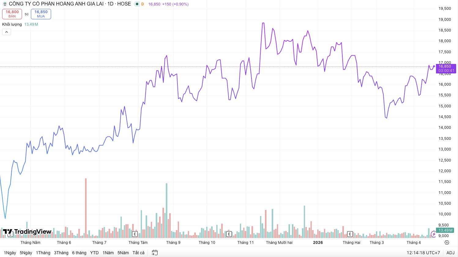 Thị giá cũng phản ánh phần nào kỳ vọng của thị trường. Cổ phiếu HAG duy trì vùng 15.000-16.000 đồng/cổ phiếu đầu năm 2026, tăng khoảng 44% so với đầu năm 2025 và đạt mức cao nhất trong vòng 10 năm.