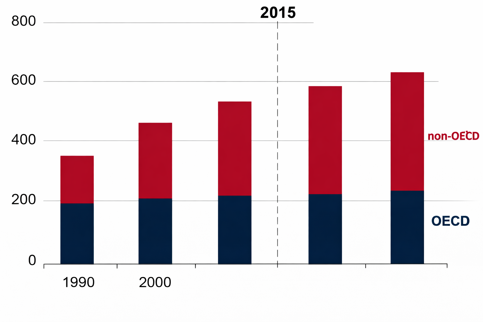 Theo báo cáo, các nước OECD – nhóm quốc gia phát triển với hạ tầng và thu nhập cao – có mức tiêu thụ năng lượng ổn định nhưng tăng chậm. Trong khi đó, các nước ngoài OECD mới là động lực chính thúc đẩy tăng trưởng nhu cầu toàn cầu. Điều này cho thấy sự phân hóa rõ rệt giữa các nền kinh tế phát triển và đang phát triển.
