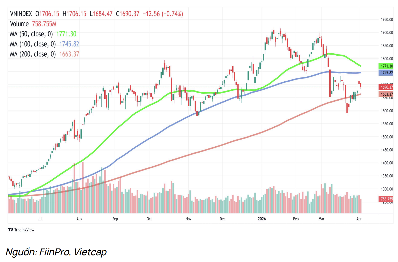 Kịch bản tích cực (Xác suất 60%): VN-Index xác lập đáy tại vùng MA200 (1.660 điểm), vượt kháng cự MA50 để hướng tới mốc 1.830 điểm vào cuối tháng.