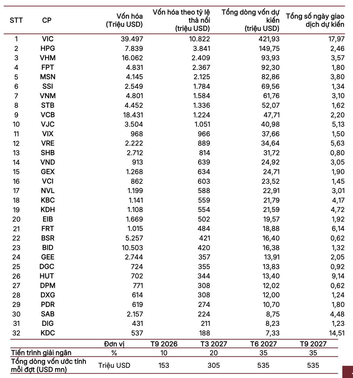 Một điểm sáng đáng chú ý là việc Việt Nam chính thức được nâng hạng lên thị trường mới nổi thứ cấp theo FTSE, có hiệu lực từ ngày 21/09/2026. Đây được xem là cột mốc cấu trúc quan trọng, dự kiến thu hút khoảng 1,5 tỷ USD dòng vốn tích lũy.