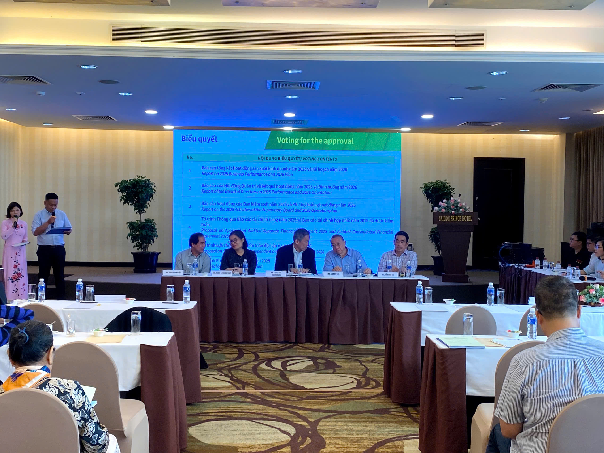 Ban chủ tọa điều hành đại hội thường niên 2026 của Sabibeco. Ảnh: TP