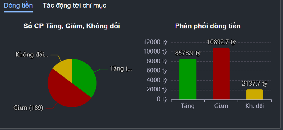 Kết thúc giao dịch 18/3, VN-Index tăng nhẹ 3,54 điểm, tương ứng 0,21% lên mức 1.713,83 điểm. Thanh khoản chưa có đột biến khi chỉ hơn 26.224 tỷ đồng giao dịch. Tuy chỉ số tăng điểm nhưng chất lượng không thực sự tốt với 134 mã tăng, trong khi có 189 mã giảm điểm. Đồng thời, dòng tiền chỉ gần 8.579 tỷ ở xu hướng tăng và 10.893 tỷ cho xu hướng giảm.