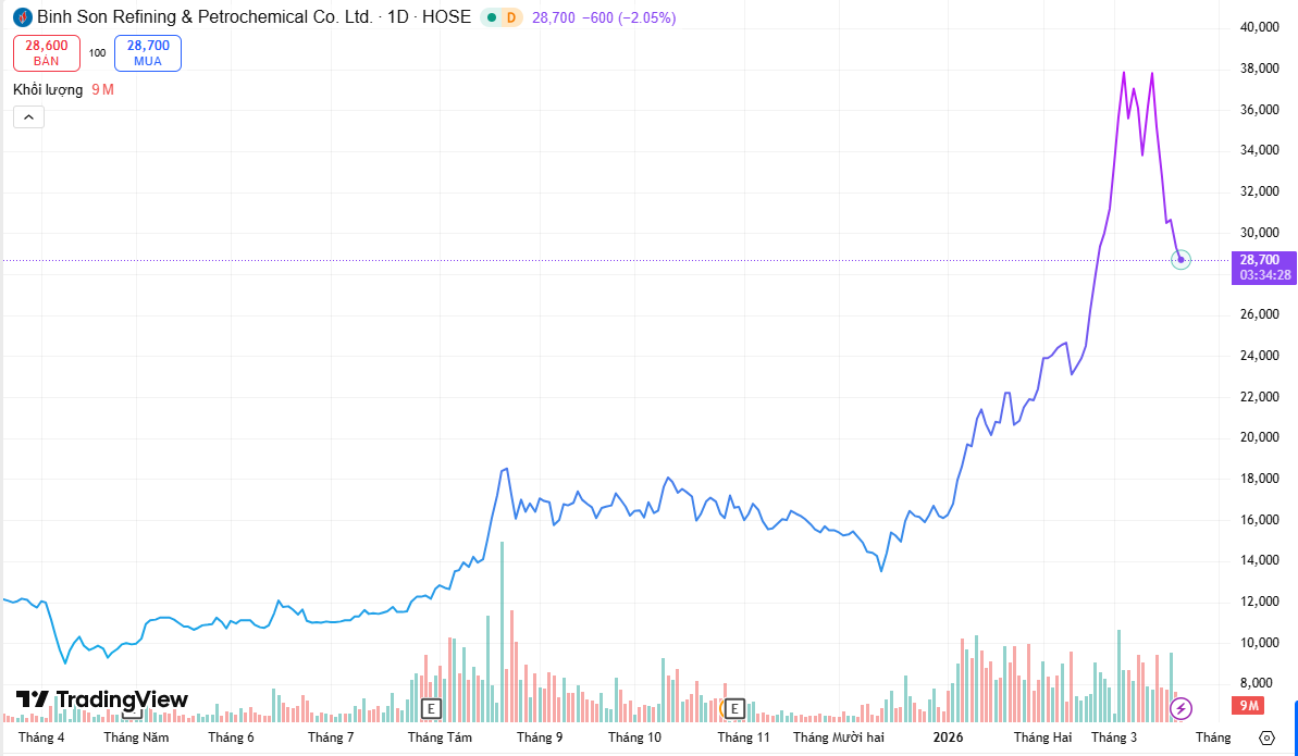 Sau thông tin liên quan đến việc không còn đáp ứng điều kiện công ty đại chúng, cổ phiếu này diễn biến tiêu cực. Trong phiên sáng 20/3/2026, giá giảm khoảng 1,5% xuống 28.850 đồng/cổ phiếu. Tính trong tuần giao dịch gần nhất, thị giá BSR giảm khoảng 18%, dù vẫn tăng khoảng 137% trong vòng một năm. Thanh khoản bình quân đạt gần 11,4 triệu cổ phiếu mỗi phiên.