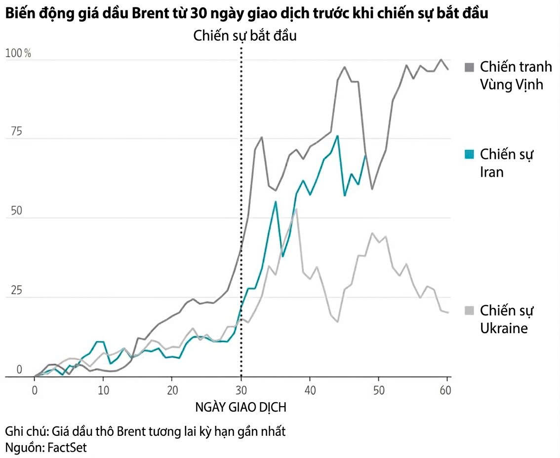 Giá dầu tăng vọt tương tự xu hướng các cuộc xung đột từng xảy ra