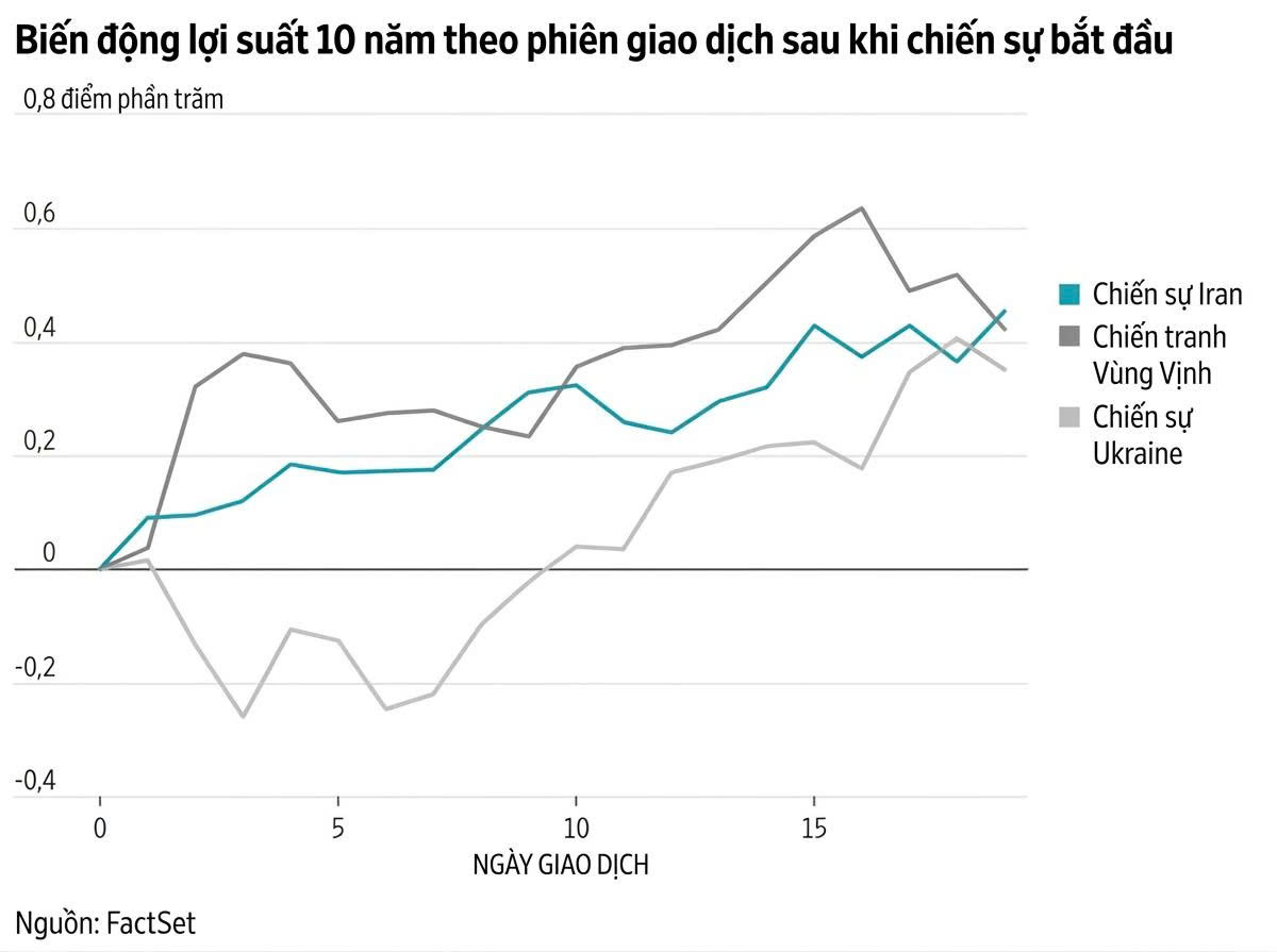 Lợi suất trái phiếu Kho bạc 10 năm chuẩn tăng nhanh hơn sau cuộc tấn công Kuwait của Iraq năm 1990, khi Mỹ phụ thuộc nhiều hơn vào năng lượng.