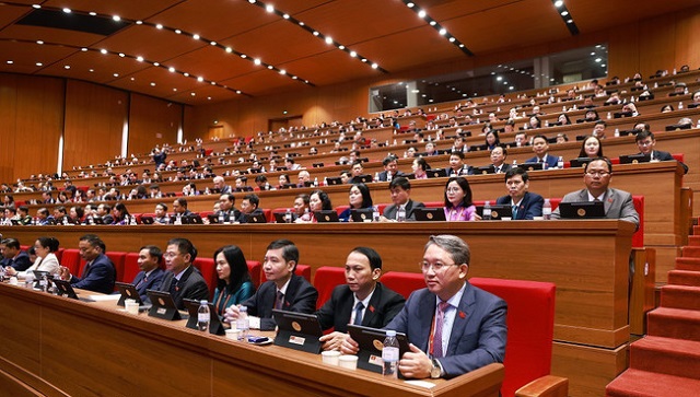 Đoàn đại biểu Đảng bộ tỉnh Đắk Lắk dự phiên thảo luận tại hội trường về các văn kiện Đại hội, sáng 21/1. (Ảnh: TTXVN)