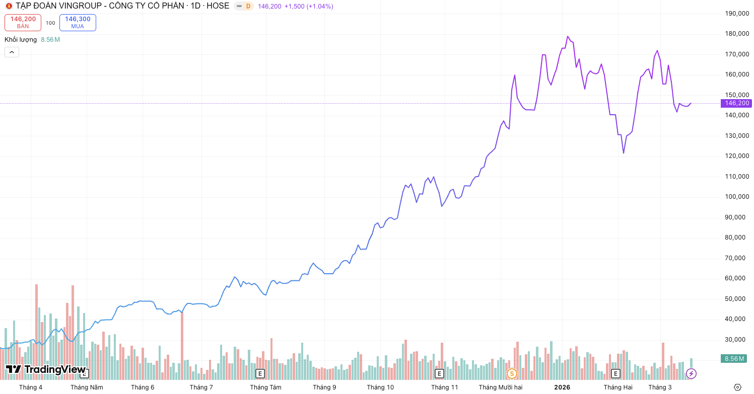 Trên thị trường chứng khoán, kết phiên 17/03, thị giá VIC đạt 146.200 đồng/cp, tăng hơn 460% sau 1 năm. Tạm tính theo mức giá này, giá trị lô cổ phiếu được chuyển quyền đạt hơn 7.100 tỷ đồng.