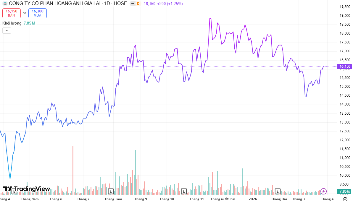 Trên thị trường chứng khoán, cổ phiếu HAG đóng cửa phiên 27/3 tại mức 16.150 đồng/cổ phiếu, tăng hơn 30,2% trong vòng một năm. Với mức giá này, giao dịch đăng ký mới dự kiến cần khoảng 64,6 tỷ đồng. Thanh khoản bình quân một năm đạt hơn 11,8 triệu cổ phiếu mỗi phiên.
