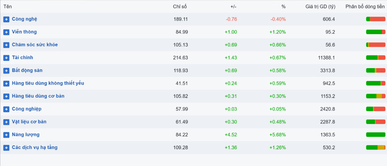 Ở chiều ngược lại, nhóm công nghệ diễn biến thiếu tích cực khi giảm 0,4% với trọng tâm là FPT. Đây là nhóm duy nhất giảm điểm trong phiên 10/4.