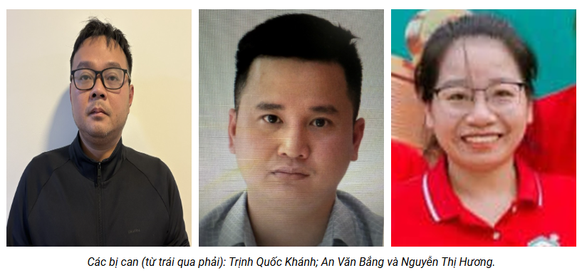 3 bị can về tội “Vi phạm quy định về khai thác tài nguyên” gồm: Trịnh Quốc Khánh, Giám đốc; An Văn Bắng, Giám đốc mỏ Khai trường 25; Nguyễn Thị Hương, Kế toán trưởng Tập đoàn Hóa chất Đức Giang Chi nhánh Lào Cai.