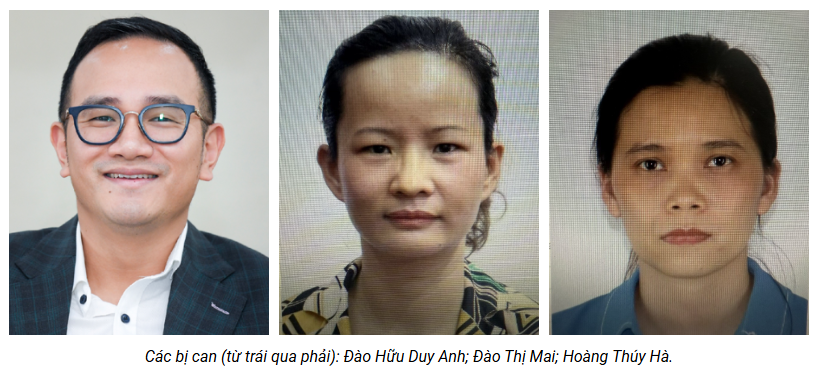 9 bị can về tội “Vi phạm quy định về kế toán gây hậu quả nghiêm trọng gồm: Đào Hữu Duy Anh, Phó Chủ tịch HĐQT, nguyên Tổng Giám đốc; Đào Thị Mai, Kế toán trưởng; Hoàng Thúy Hà, Kế toán và Nguyễn Thị Phương Anh, Thủ quỹ Tập đoàn Hóa chất Đức Giang; Phạm Thị Bích, Kế toán trưởng Công ty TNHH MTV Hóa chất Đức Giang - Lào Cai; Đặng Tiến Đức, Giám đốc; Phạm Thị Bích Phương, Kế toán trưởng Công ty Cổ phần Phốt pho Apatit Việt Nam; Trần Minh Tuấn, Giám đốc; Nguyễn Thị Phương Thảo, Kế toán trưởng Công ty TNHH MTV Hóa chất Đức Giang - Đắk Nông.