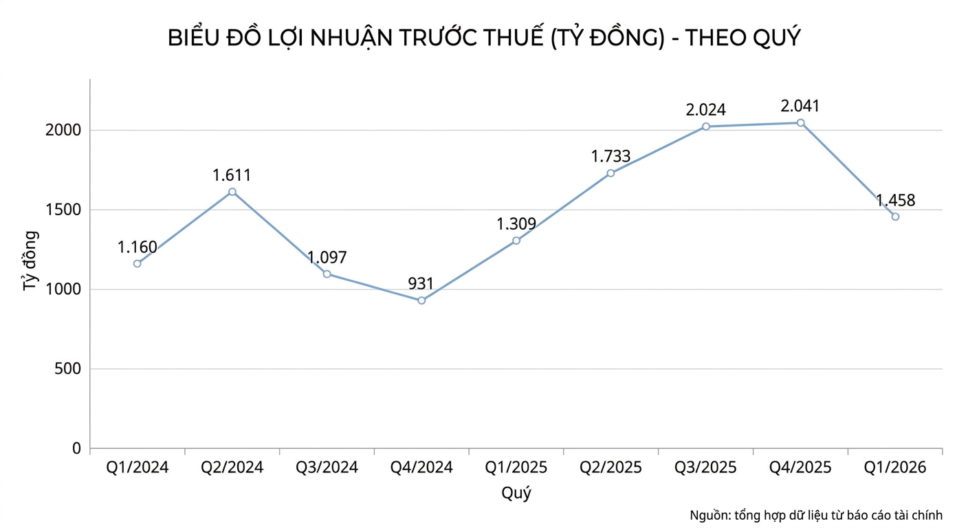 CTCP Chứng khoán Kỹ Thương (TCBS, HOSE: TCX) ghi nhận quý I/2026 với doanh thu hoạt động hơn 2.783 tỷ đồng, tăng 37% so với cùng kỳ. Lợi nhuận trước thuế đạt hơn 1.458 tỷ đồng, tăng 11%, trong khi lợi nhuận sau thuế đạt gần 1.148 tỷ đồng, tăng 13,5%.