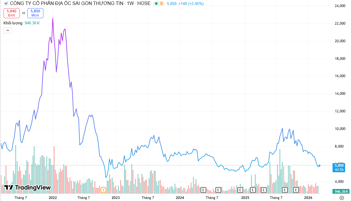 SCR từng bứt phá khỏi mệnh giá, lập đỉnh hơn 2 năm tại mức 10,200 đồng/cp vào cuối tháng 9/2025. Nhưng sau đó liên tục điều chỉnh mạnh, hiện rơi xuống dưới 6,000 đồng/cp, tương ứng giảm khoảng 42.5% trong chưa đầy nửa năm.