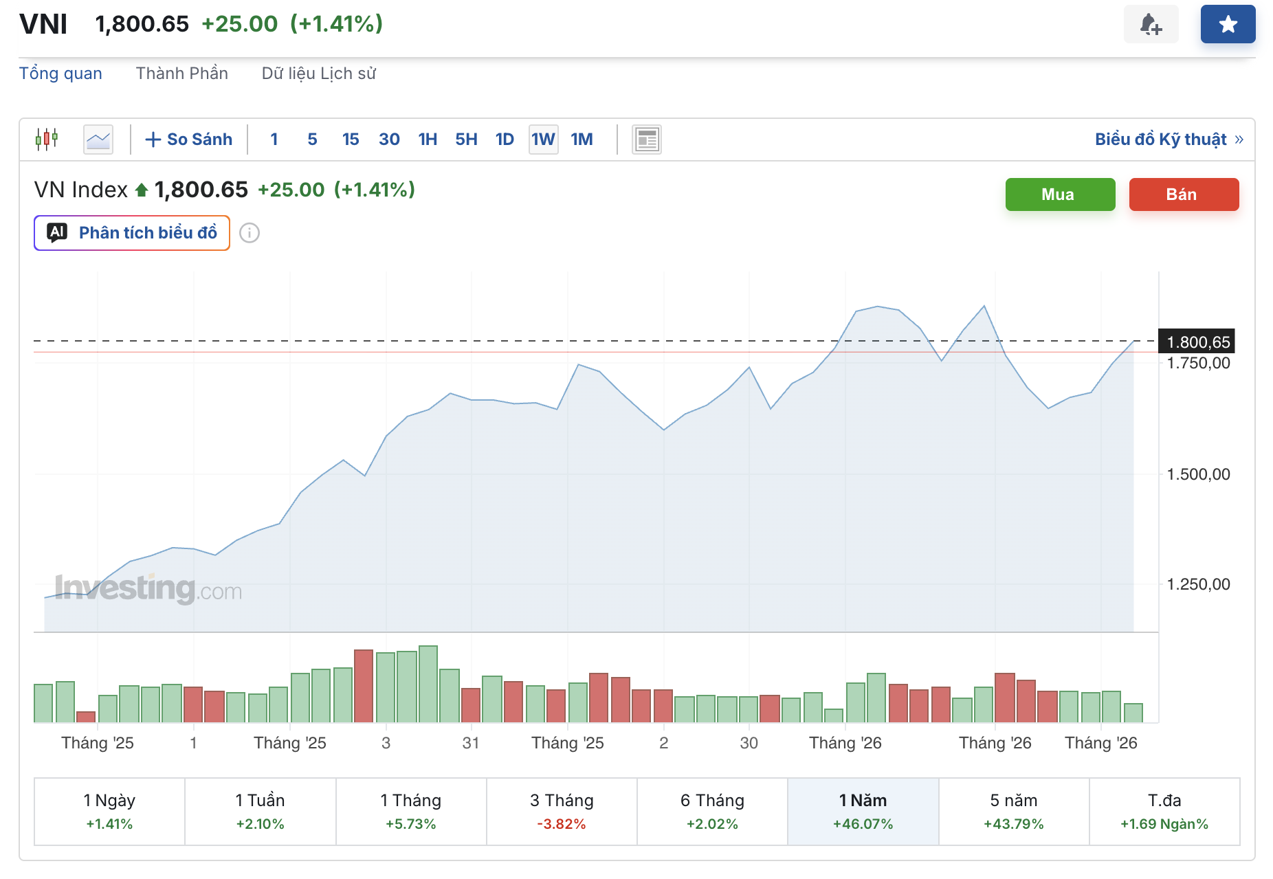 VN-Index lấy lại mốc 1.800 điểm nhưng phụ thuộc vào nhóm cổ phiếu dẫn dắt: Đà tăng của chỉ số đang được hỗ trợ đáng kể bởi nhóm cổ phiếu Vingroup, cho thấy dòng tiền vẫn tập trung vào các mã vốn hóa lớn. Diễn biến này gợi ý xu hướng phục hồi hiện tại chưa thực sự lan tỏa rộng, và phụ thuộc vào vai trò của nhóm trụ.