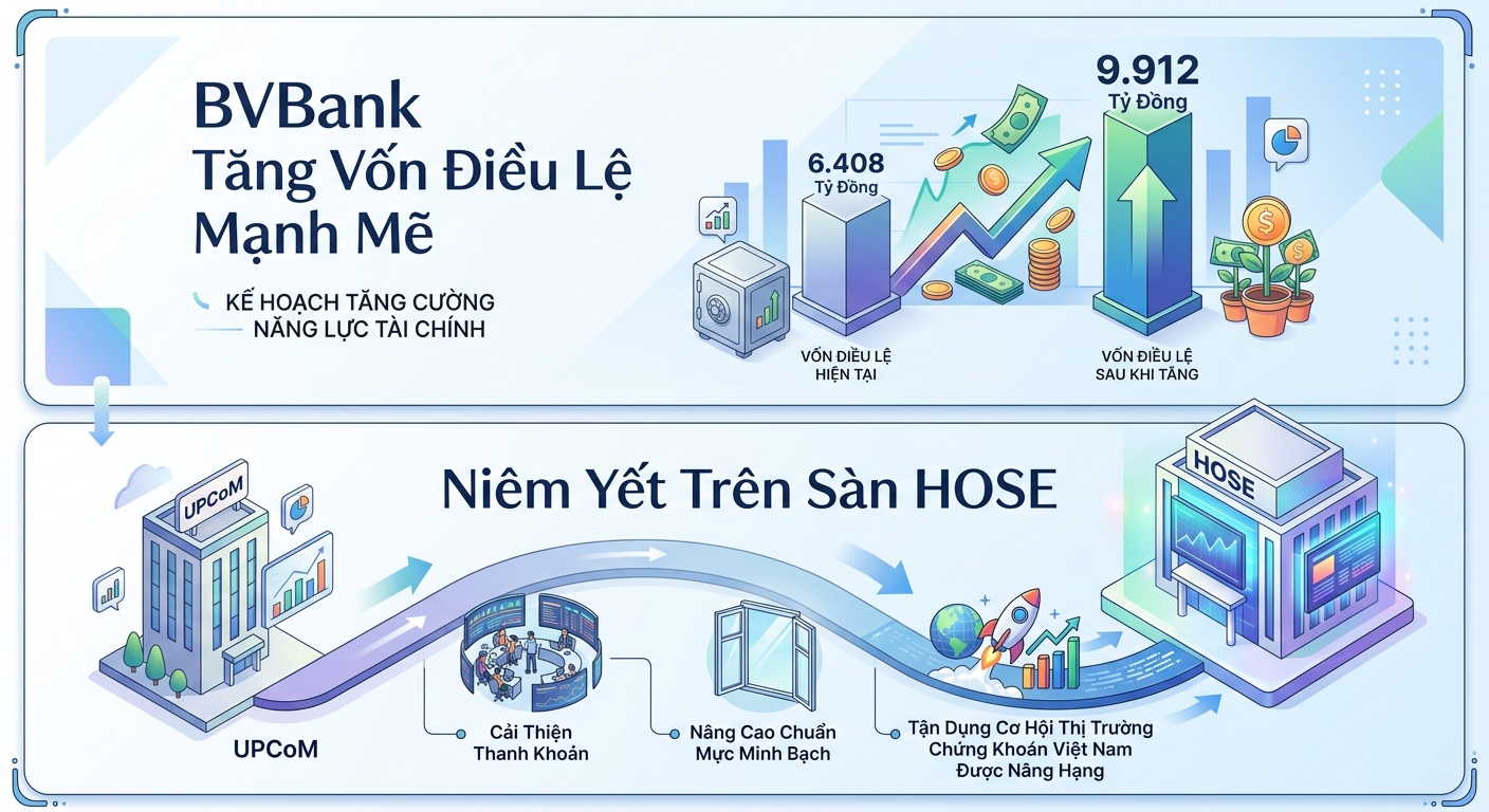 Ngân hàng tiếp tục tăng vốn, chuẩn bị cho giai đoạn mở rộng: Các kế hoạch tăng vốn và chuyển sàn cho thấy xu hướng củng cố nền tảng tài chính và nâng cao tiêu chuẩn hoạt động. Đây là yếu tố có thể ảnh hưởng tới định giá và khả năng thu hút dòng tiền trong trung hạn.