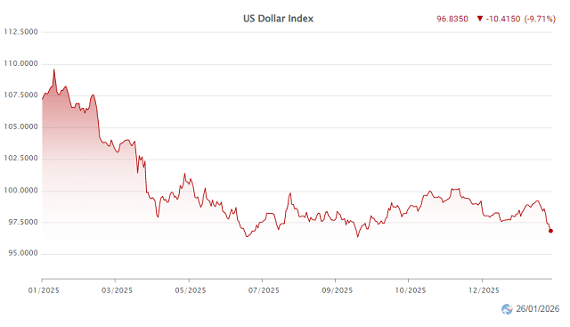 Diễn biến DXY từ đầu năm 2025 đến ngày 27/01/2026