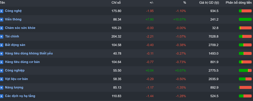 Dòng tiền vào thị trường khá hạn chế và phân hóa rõ khi chỉ tập trung ở một số nhóm cổ phiếu ngách sau 2 phiên liên tiếp mua vào nhóm các cổ phiếu có tính thị trường cao. Nổi bật nhất trong phiên 26/3 là nhóm Viettel với 3 cổ phiếu VGI, CTR và VTP. Nhóm này tăng mạnh ngay từ đầu phiên và duy trì vị thế này đến hết phiên.
