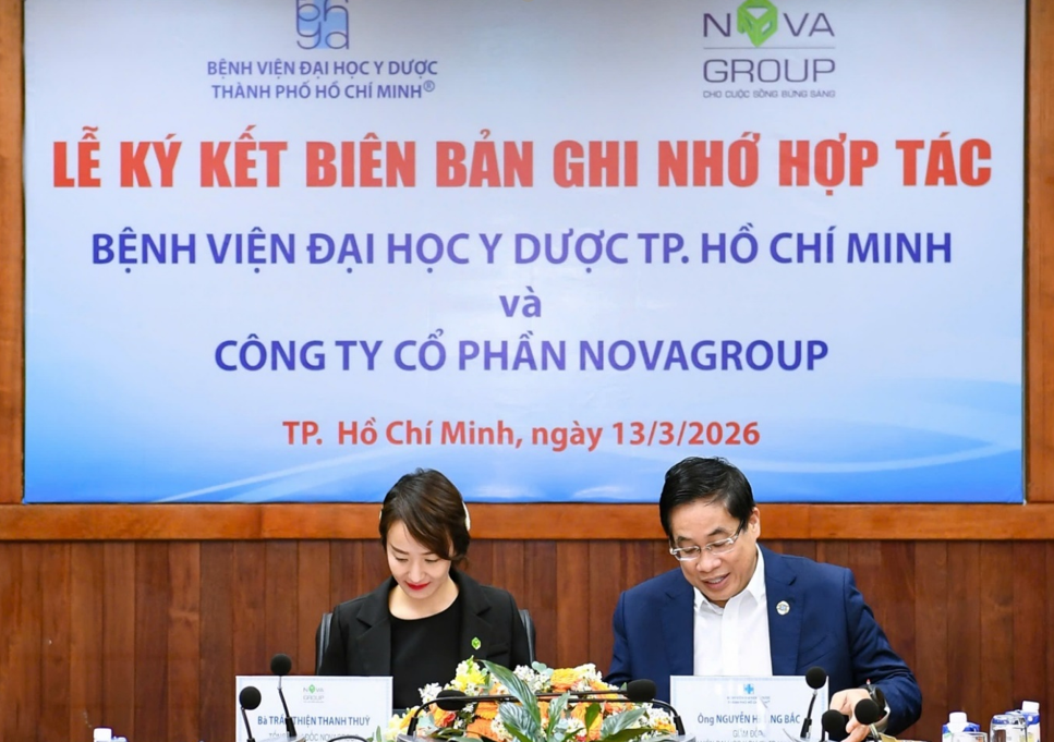 Ngày 13/3/2026, tại Bệnh viện Đại học Y Dược TP.HCM đã diễn ra lễ ký kết hợp tác giữa Bệnh viện Đại học Y Dược Tp.HCM và NovaGroup nhằm triển khai các dịch vụ y tế chất lượng cao.