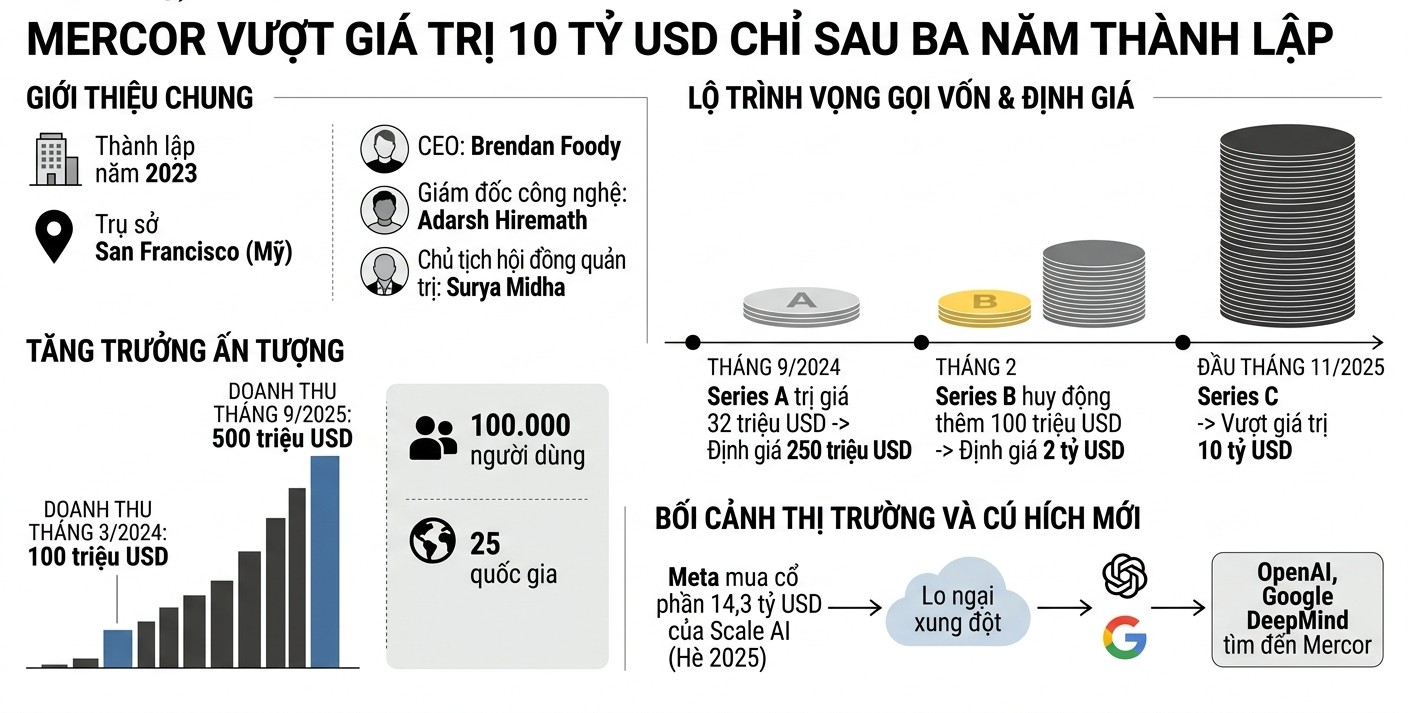 Mercor đang nổi lên như một hiện tượng gây tranh cãi tại Thung lũng Silicon. Với định giá 10 tỷ USD chỉ sau ba năm thành lập, startup này đang xây dựng một "đội quân" chuyên gia trình độ cao để huấn luyện các mô hình trí tuệ nhân tạo (AI) thực hiện những công việc vốn là của con người.