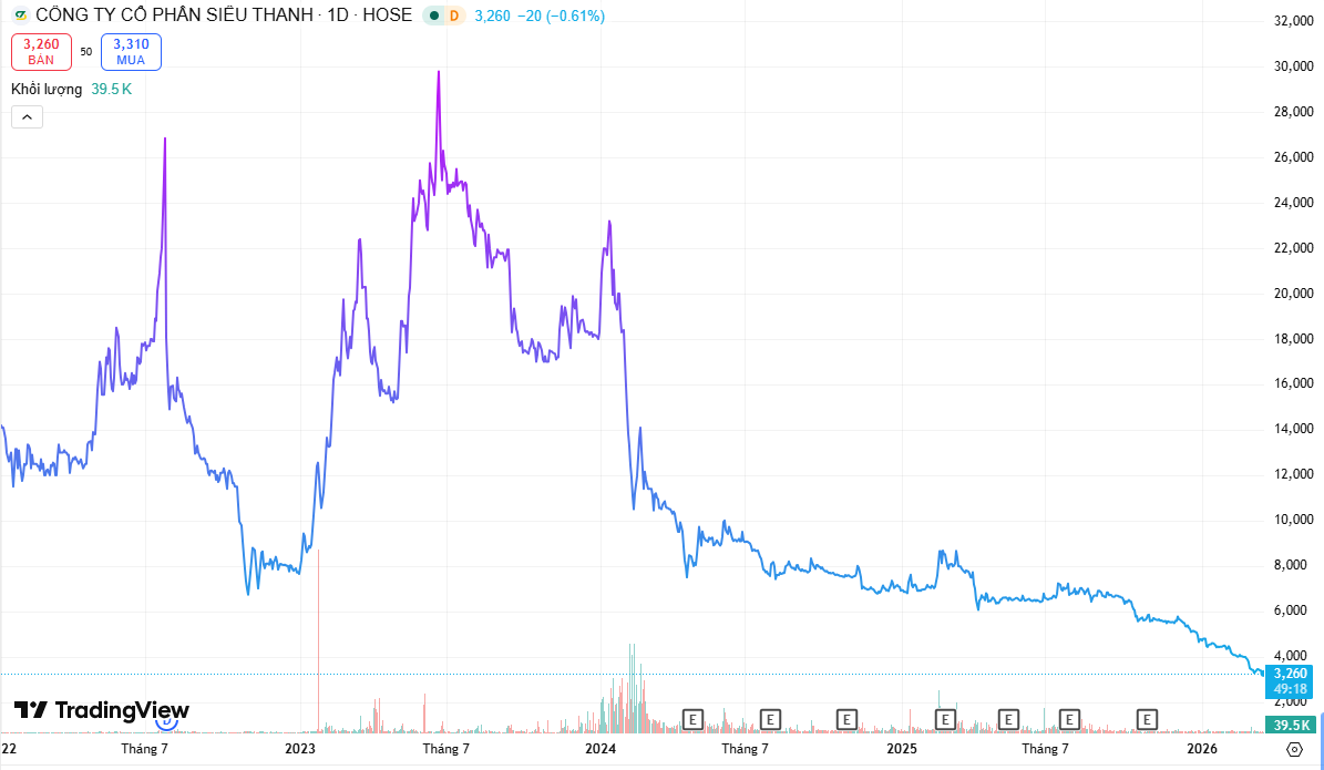 Sau nhịp giảm sâu, ST8 tiếp tục xu hướng đi xuống và hiện giao dịch quanh 3.270 đồng/cổ phiếu trong phiên chiều 24/03/2026, tương ứng giảm khoảng 90% so với đỉnh lịch sử. Trong vòng một năm, thị giá giảm gần 58%, với thanh khoản bình quân hơn 260.000 cổ phiếu mỗi phiên.