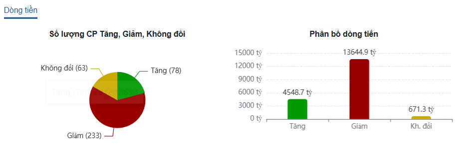 Toàn sàn HOSE có 233 mã giảm và chỉ 78 mã tăng giá cho thấy dòng tiền bán chủ động, khả năng đang vào nhịp phân phối.