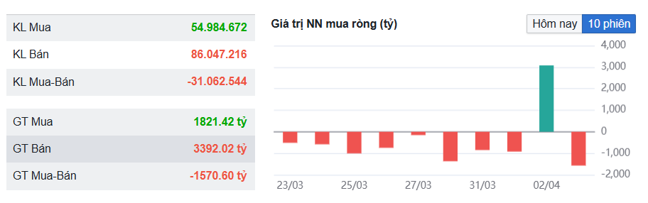 Khối ngoại trong phiên 3/4 tiếp tục duy trì bán ròng với hơn 1.570 tỷ đồng (phiên 2/4 do ảnh hưởng từ giao dịch thỏa thuận mua của VPL trong khi bản chất vẫn là bán ròng). VHM là cổ phiếu bị bán mạnh nhất với hơn 463 tỷ đồng.
