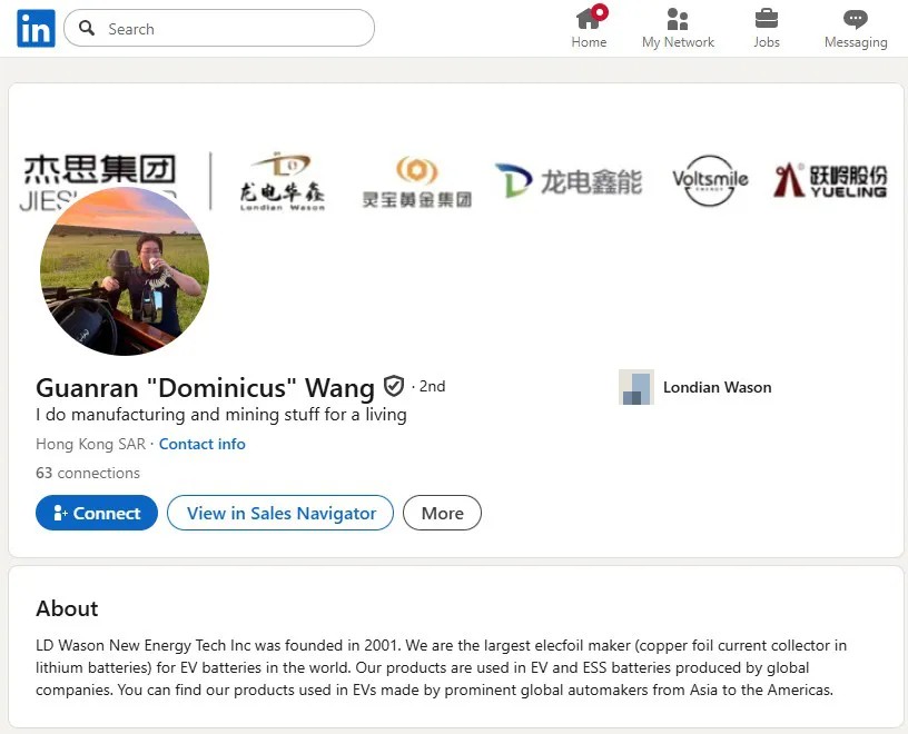 Cùng nhau, cha con nhà họ Wang đang âm thầm chuyển hướng di sản đầu tư tư nhân của mình sang một đế chế kim loại. Theo một tuyên bố từ Londian Wason, Wang Guanran đã tham dự hội nghị thượng đỉnh ngành công nghiệp vào năm 2023 tại Thâm Quyến tập trung vào hợp tác công nghiệp Trung Quốc-ASEAN.