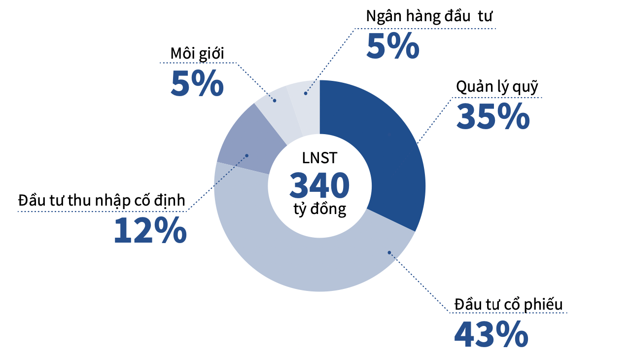 Trước đó, trong năm 2025, hoạt động đầu tư vào cổ phiếu niêm yết là nguồn đóng góp lợi nhuận lớn nhất của công ty, chiếm khoảng 33% tổng lợi nhuận trước chi phí phân bổ trong năm 2025. Lĩnh vực quỹ đầu tư ghi nhận mức tăng trưởng đáng kể, đóng góp khoảng 37% tổng lợi nhuận (so với mức 27% của năm trước). Kinh doanh nguồn vốn, chủ yếu là các hoạt động đầu tư trong phần chứng khoán có thu nhập cố định duy trì đóng góp ổn định ở mức 16%. Phần còn lại đến từ đầu tư tư nhân, môi giới và tư vấn.