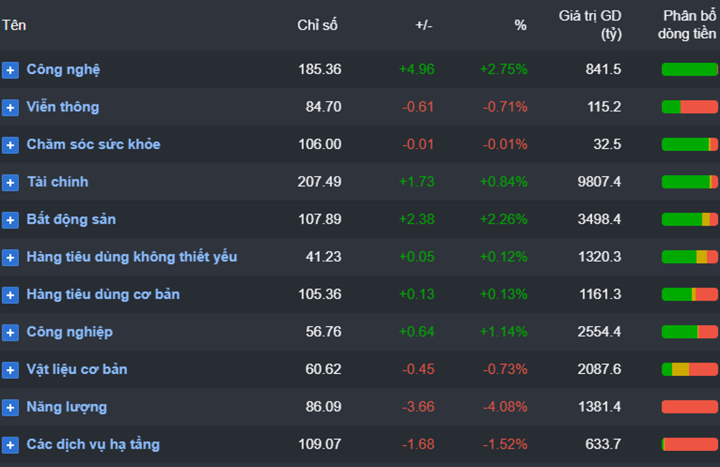 Tuy nhóm chứng khoán có dòng tiền vào nhưng việc thiếu vắng dòng tiền lớn đã không kích hoạt tăng mạnh, kết phiên, chỉ có 2 cổ phiếu trong nhóm là FTS và BSI tăng trần, các cổ phiếu trụ trong nhóm như VND, VIX, VCI, HCM, MBS, … giữ được sắc xanh.